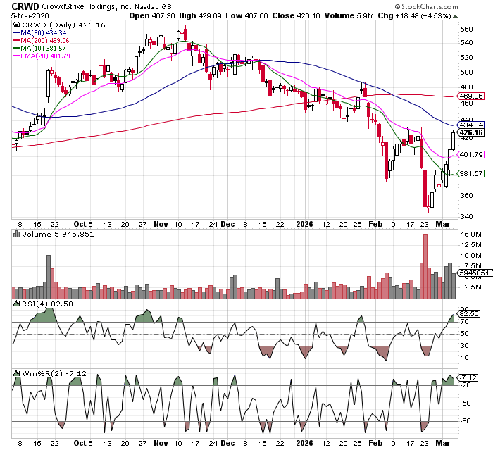Been talking a lot about CRWD lately as we thought it was unfairly targeted in the software selloff. Undercut and rally at the 10 day MA and 20 day EMA. Next potential stop is the 50 and 200. It’s up a lot over a short period of time so a pause would be likely.