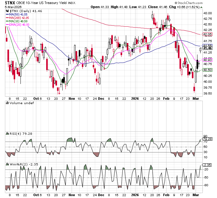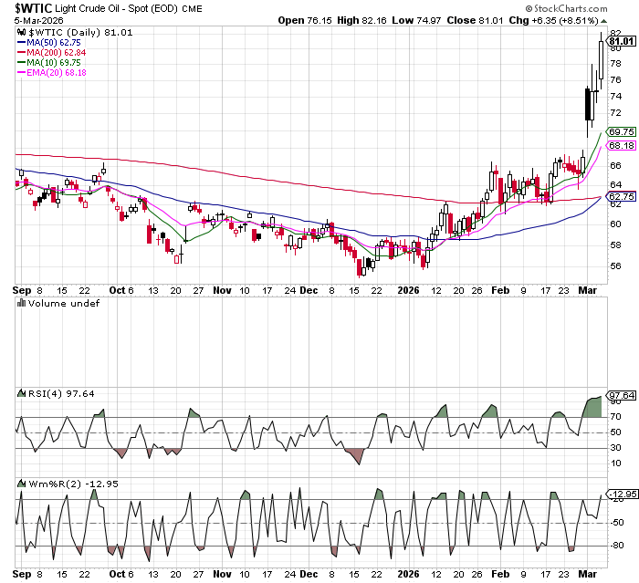 News came out last night that the Treasury was going to announce measures to reduce oil prices, perhaps using futures markets. Not quite sure how they will do that, but just announcing it may calm things down. Politico reported that the conflict could last another 100 days, or longer.