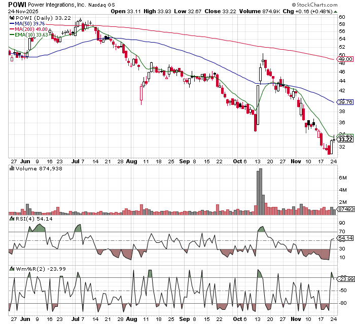 POWI is an AI picks and shovels play with a reasonable base case valuation. Look for a potential undercut and rally at the 10 day moving average.