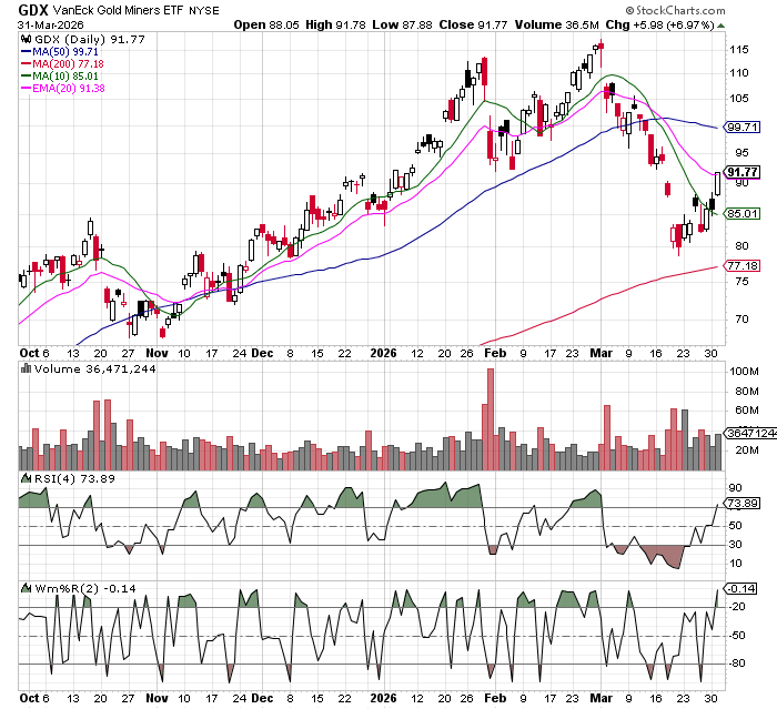 My preffered way to play this is still the gold miners. If the war is really over I think you get a rally in gold, if it isn’t, I think you can still get a rally in gold……