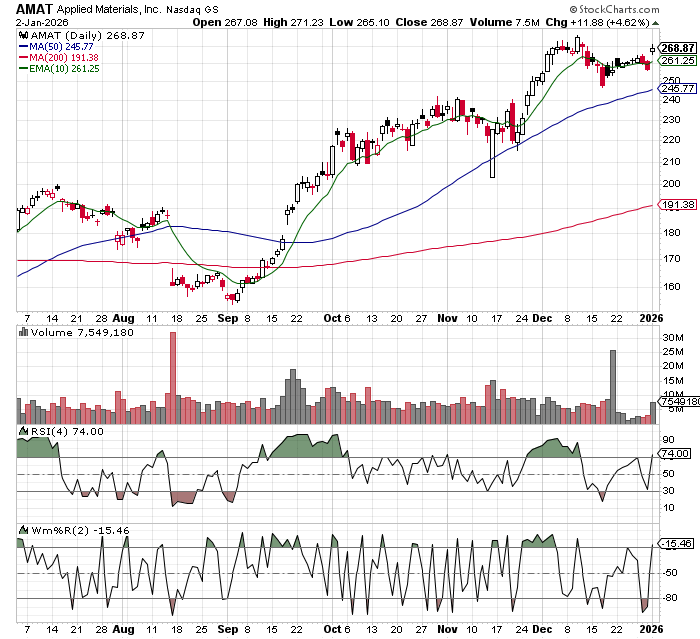 Applied Materials (AMAT) is one of the cleanest “picks-and-shovels” ways to stay long the AI buildout without having to be exactly right on which chip/platform wins next. As the industry moves from a compute-constrained phase to a systems-driven cycle, AMAT sits in the tollbooth across the two places where spend is most persistent: leading-edge foundry/logic (more complex process steps, more deposition/etch intensity) and memory (HBM/DRAM/NAND capacity and technology transitions). The key point is that even if the “next NVIDIA” debate creates volatility in chip stocks, the fabrication complexity trend still forces incremental equipment demand—more layers, tighter tolerances, and more process control—where AMAT’s breadth matters. Into 2026, the underappreciated angle is that a lot of the AI discussion is shifting from who has the best model to who can economically manufacture and scale the infrastructure, and that keeps capex anchored in the semicap stack. If you want AI exposure with a more diversified demand base (memory + foundry + services) and a clearer path to cash generation across cycles, AMAT is a high-quality “backbone” name to keep on the screen.