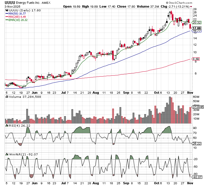 I’ve talked about this one a lot. I cut some exposure into earnings last night, lucky for me as it’s down 11%+ in the pre market. This name straddles rare earth and uranium, which are two themes I like. Watch the 50 day moving average here, at this point it would open below. If it can pull an undercut and rally there, then this could be a decent spot.