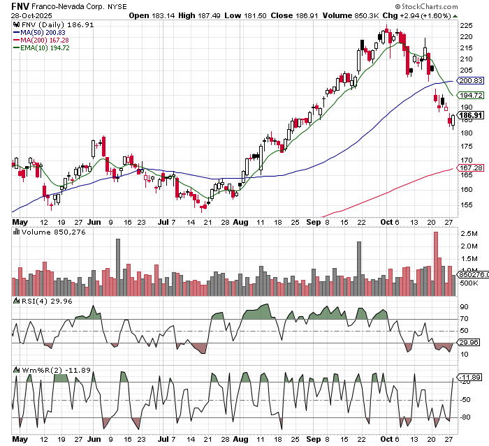 Gold royalty companies like Franco-Nevada (FNV) offer exposure to gold prices without the headaches of mining. Instead of digging metal out of the ground, they finance miners in exchange for a small percentage of future production or revenue. That means they get paid as long as the mine produces—without taking on operating costs, labor issues, or environmental risk. The result is a business model that’s more stable, more profitable, and less volatile than traditional gold miners like Barrick or Newmont. In a world where inflation and fiscal risk remain stubborn, FNV and other royalty names are becoming the “cash flow kings” of the gold sector—offering gold exposure with dividend consistency and almost no operational drama.