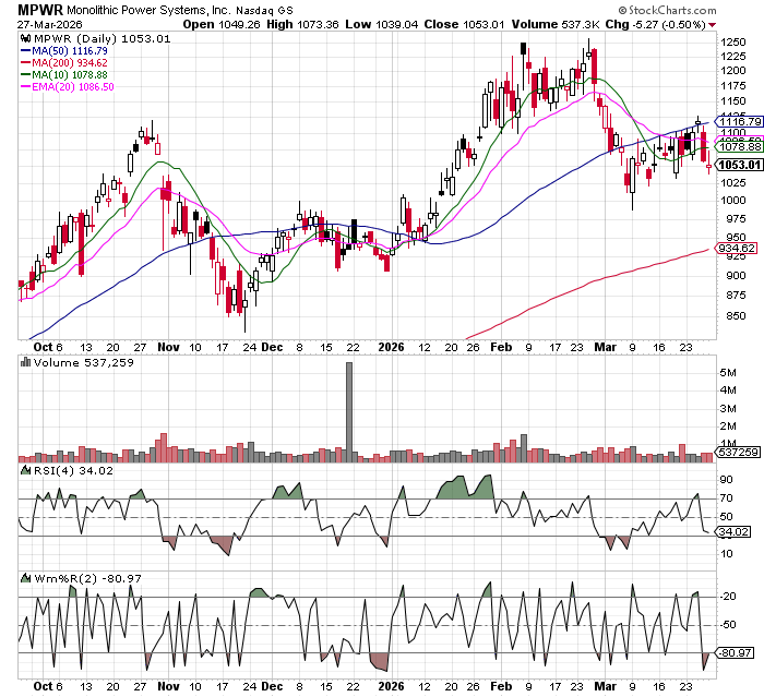 MPWR is a below the radar screen name I’m watching. Every AI server NVIDIA builds needs to be powered. MPWR has quietly captured 30-35% of that market — making it the single largest supplier of power management chips to AI data centers. NVIDIA is rolling out a new 800-volt DC power standard for its next-gen AI infrastructure. MPWR is the frontrunner to own that transition. It’s been crushed along with everything else……