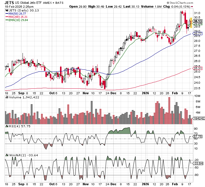 Despite all the doom and gloom out there, markets continue to move up. Seeing some strength in consumer discretionary stocks, which I would ignore. Money rotates around from time to time, and this time it’s rotating hard. It’s coming out of anything that traders think AI is going to eat, and going into things it can’t, like airlines…..